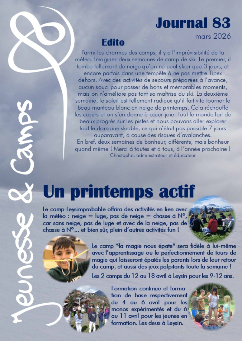 1er journal de Jeunesse et Camps: convocation à l'Assemblée Générale, le camp de ski et de snowboard à Saas Grund et l'annonce des camps d'été